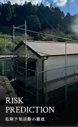 朝礼時のミーティング、周囲の安全確認、従業員同士での声掛けや安全帯の着用など、安全に最大限配慮した足場工事を行います。