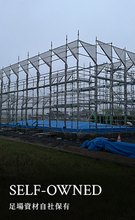 足場資材を保有しているため、足場工事費用にお悩みの方もご相談ください。見積り・現地調査なども実施いたします。